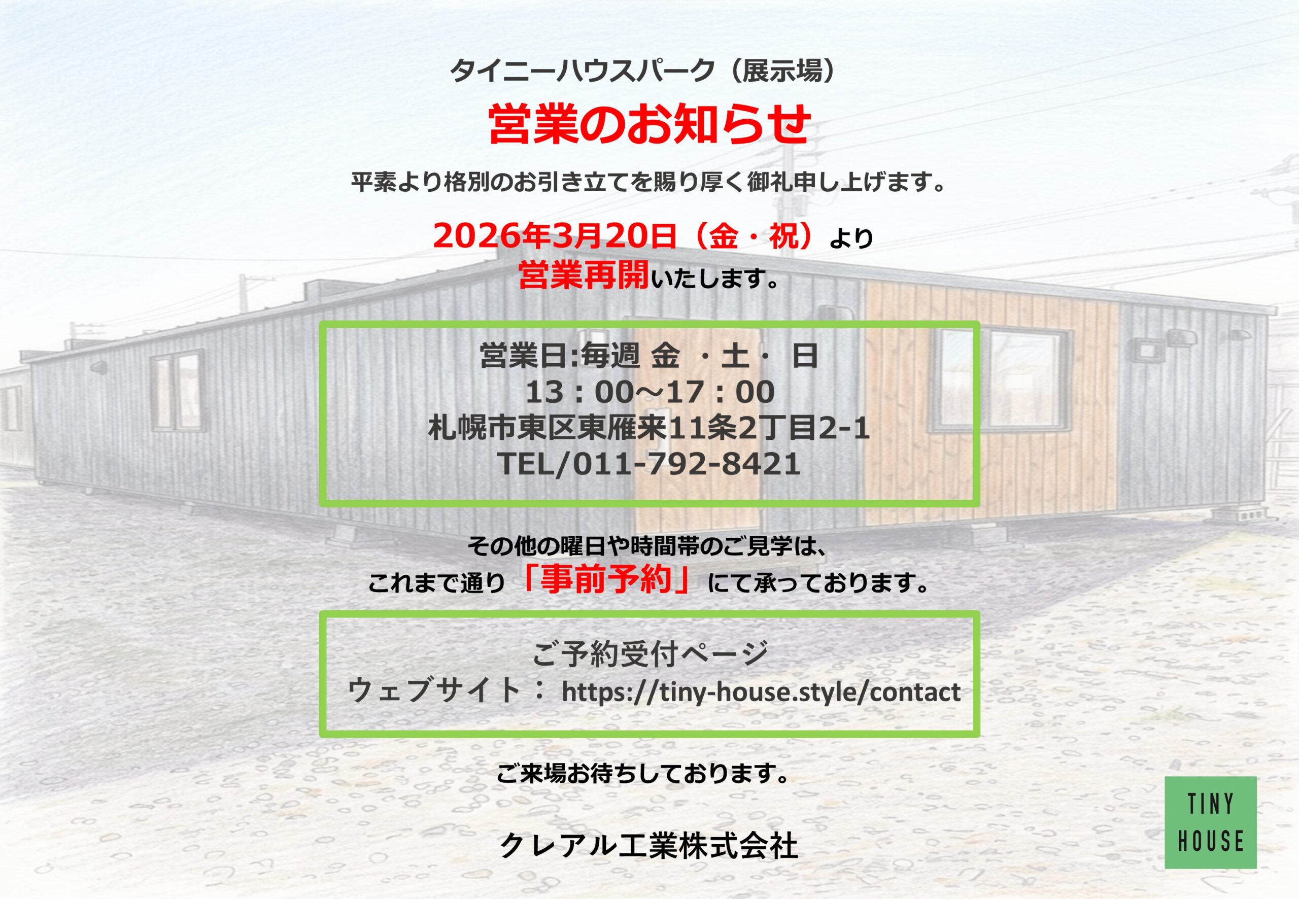 2026年3月20日(金・祝)より、展示場の営業を再開いたします!