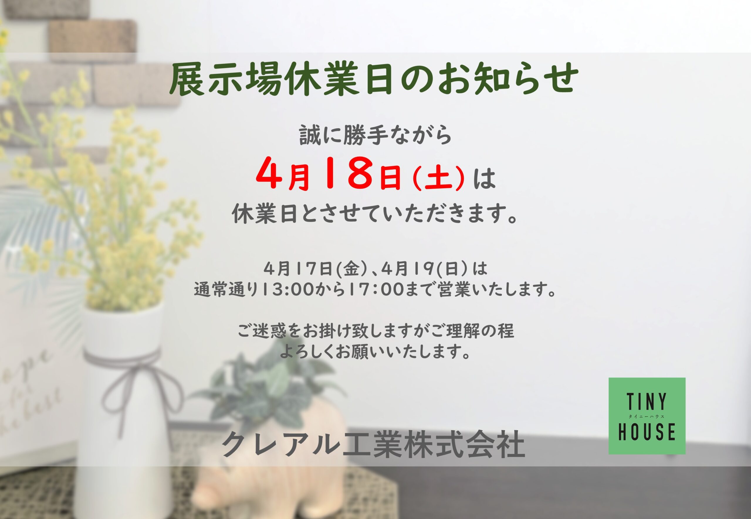 尚4/17(金)、4/19(日)は通常通り13:00から17:00まで営業いたします。