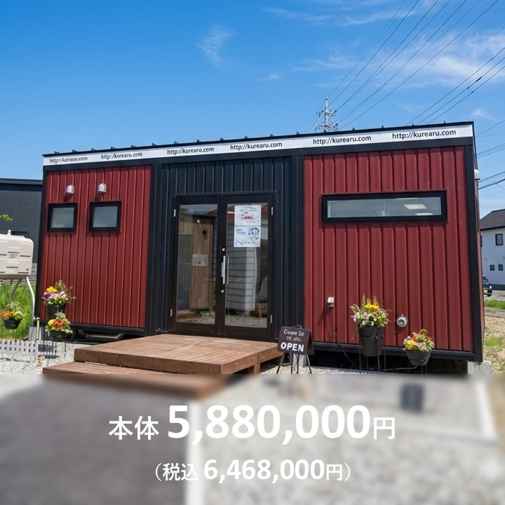 Tiny workタイニーワーク Size7350×6000×H2800mm 外装ガルバニウム角波(ボルトレス) 内装石膏ボード クロス仕上げ 床クッションフロア 断熱グラスウール仕様 海上コンテナのような無骨な外観ながら住宅品質を確保。3ユニット連結したことで広い空間を確保し、オフィスや店舗と活用は無限大! OPTION 一覧へ戻る